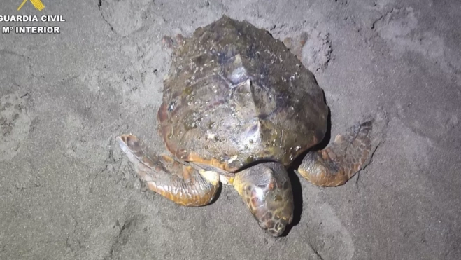 El Seprona de la comandancia de Las Palmas ha rescatado un ejemplar de tortuga boba (caretta caretta) que se encontraba en mal estado en la playa del Hombre del municipio de Telde, en Gran Canaria.