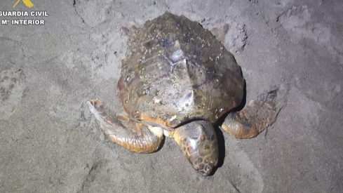 Los agentes acudieron a la playa el pasado 26 de diciembre tras la alerta de una ciudadana, descubriendo a un un ejemplar de la citada especie en un estado alarmante. El animal, varado en la orilla, presentaba un cuadro preocupante: cortes visibles en una de sus aletas delanteras sugerían un encuentro desafortunado con residuos plásticos o artes de pesca que plagan el mar.