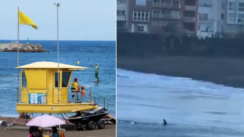 Este sábado se tuvo que activar el protocolo de prevención ante el avistamiento de un escualo próximo a la costa teldense, por lo que se izó la bandera roja en el mástil de la playa y se desalojó a los bañistas del agua.