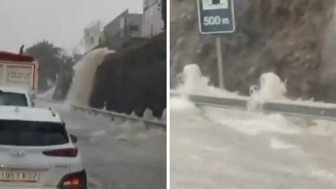 Las intensas lluvias que está sufriendo Gran Canaria, especialmente Telde, por la DANA que golpea este lunes Canarias han provocado que un muro de la autopista GC-1 a la altura del polígono industrial de El Goro (Telde) se venza y el agua comience a caer en cascada sobre la carretera, virtiendo miles de litros.