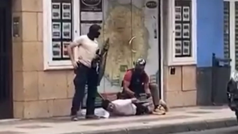 Tal y como se aprecia en el vídeo, los agentes inmovilizaron a los dos hombres que presuntamente están implicados en el crimen, ante la atenta mirada de vecinos y transeúntes de la calle Presidente Alvear.