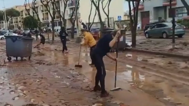 Los vecinos de Salinetas, en Telde, una de las zonas más afectadas por la DANA que golpea este lunes a Canarias, se han visto obligados a salir a limpiar el barro y el fango con sus propias escobas.