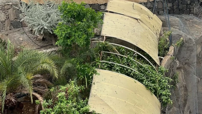 La borrasca Nuria está llegando a Canarias con fuertes vientos, especialmente en zonas como el suroeste de Gran Canaria, donde ha dejado varios incidentes. En la mañana de este jueves, fuertes rachas de viento han desprendido varios tejadillos en una zona ajardinada de Patalavaca, en el municipio de Mogán, Gran Canaria.