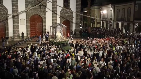 Tras una oración, la Virgen ha enfilado la calle Real de Teror entre vivas y aplausos, seguida por todas las personas que la acompañan en su camino hacia la catedral y a la que se unirán muchas más a su paso por diversos puntos de la isla.