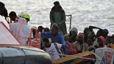El cayuco, que navegaba por sus propios medios, fue acompañado por la Salvamar hasta el muelle, donde a las 7.54 hora local empezó el desembarco.