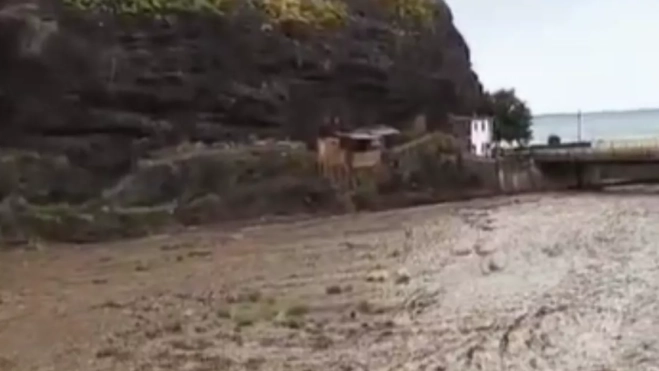 Las fuertes precipitaciones provocadas por la borrasca Nuria este jueves han incrementado notablemente el caudal del Barranco de las Angustias en Tazacorte, La Palma, generando preocupación entre los residentes y autoridades locales ante la posibilidad de un desbordamiento.
