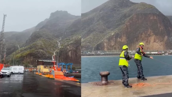 En medio de esta situación un crucero ha conseguido atracar en medio del temporal, enfrentándose al fuerte viento. Además, las ráfagas de aire han tirado algunos contenedores ubicados en el puerto de la capital.