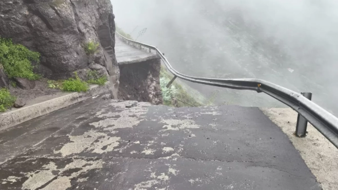 La vía afectada presenta un estado muy deteriorado, con tramos que han quedado prácticamente hundidos, según se aprecia en las imágenes difundidas.