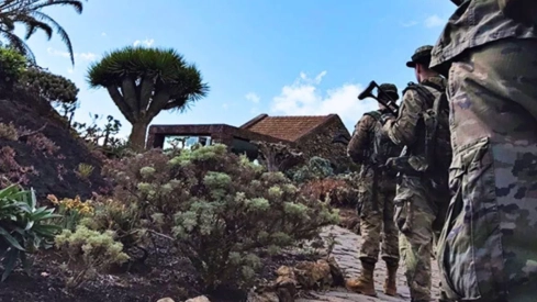 Efectivos de la Brigada Canarias (BRICAN) XVI del regimiento de infantería Tenerife 49, se han desplegado desde este jueves, 16 de octubre y hasta el próximo martes día 21,en la isla de El Hierro, realizando patrullas terrestres. Estas labores tienen como finalidad reforzar la vigilancia, disuadir posibles amenazas y garantizar la seguridad de los espacios terrestres bajo soberanía nacional en la isla.