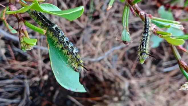 Desde hace unos días el pinar del de Fuencaliente de La Palma se está viendo de nuevo afectado por la lagarta canaria, un insecto que se alimenta del pinillo verde. En 2023 se detectó como muchos pinos de la Montaña Enrique, en El Paso, comenzaron a secarse por la oruga y, poco a poco, se han ido desplazando al sur de la isla, donde se han asentado. El pasado verano ya se vivió un episodio muy similar, cuando comenzaron a aparecer las primeras orugas en las Tabladas y después se extendió por toda la localidad, hasta llegar cerca del barrio de Montes de Luna, en Villa de Mazo.