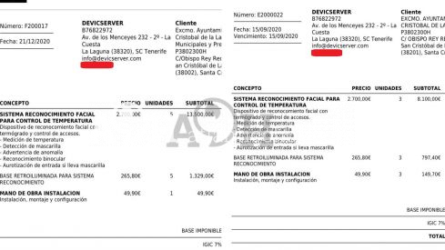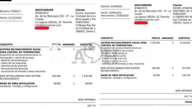 Atlántico Hoy ha podido acceder a alguna de las facturas de los contratos públicos entre Devicserver y el Ayuntamiento de La Laguna, que contradicen varias de las acusaciones del Alfredo Gómez, abogado de profesión. Concretamente, las relativas a los sobrecostes y número de unidades vendidas de sistemas sanitarios de reconocimiento facial de temperatura, que desarrolla en el vídeo publicado el 27 de mayo.