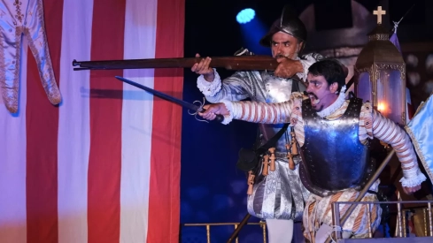 El vistoso espectáculo trasladó a los varios miles de visitantes que se reunieron junto a la iglesia de la comarca lagunera a una época en los reinos católicos se enfrentaban al creciente expansionismo del Imperio Otomano en el Mediterráneo, dando paso a una de las mayores batallas navales de la historia occidental, con más de 400 barcos de guerra.