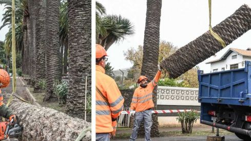 El Ayuntamiento de La Laguna, a través de la Concejalía de Servicios Municipales, ha iniciado este martes el proceso de sustitución de 16 ejemplares de palmera canaria afectadas por fusariosis en el Camino Largo.
