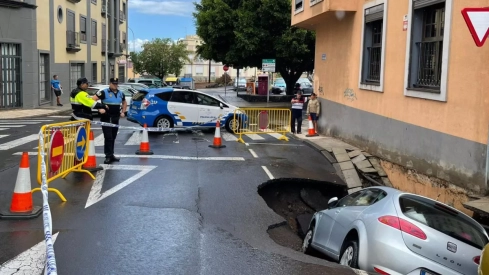 Corrieron al lugar donde habían aparcado el coche y comprobaron que, efectivamente, la calzada estaba hundiéndose poco a poco, engullendo su vehículo. No fue inmediato, no calló a plomo. Cuando llegaron, el socavón se estaba agravando y les dio miedo meterse al coche para sacarlo por si se las llevaba con él. Los dueños de los vehículos colindantes tuvieron suerte y pudieron retirarlos antres de que la zona donde estaban aparcados se derrumbara también.