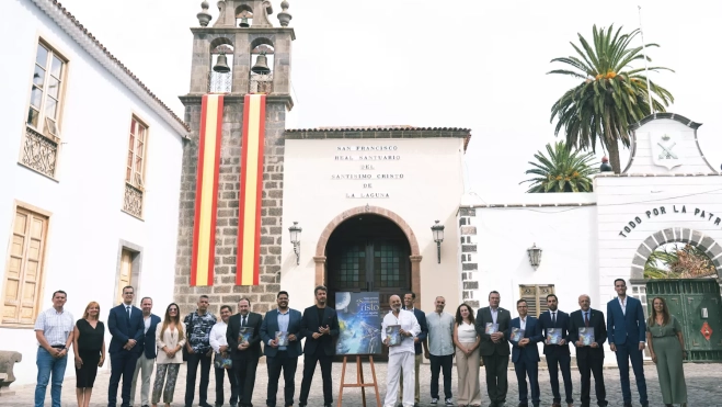 Por último, el artista Fran de Miguel explicó la simbología y la historia que ha precedido al cartel oficial de estas fiestas, el cual aúna en su composición a los pueblos costeros de La Laguna, los tradicionales fuegos y la figura del Cristo engrandecida.