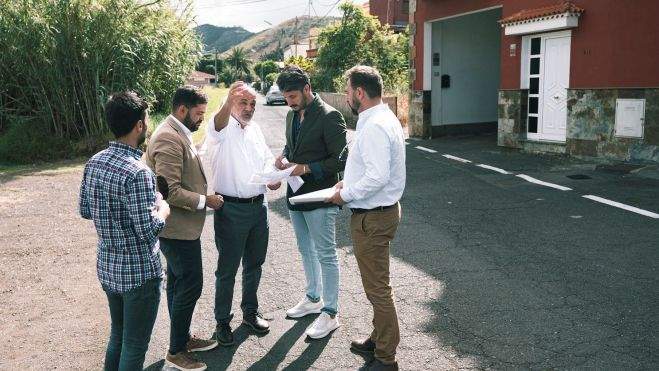 El alcalde de La Laguna, Luis Yeray Gutiérrez, y el edil de Servicios Municipales, Josimar Hernández, han visitado, junto al gerente de Teidagua, Félix de Armas, el lugar en el que se va a llevar a cabo la actuación, con un presupuesto de 120.000 euros, para informar de primera mano a vecinas y vecinos del entorno sobre los detalles de la intervención, que no afectará a la calidad del abasto ni provocará cortes generales de agua.