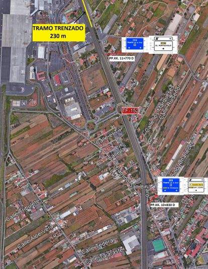 El área de Carreteras del Cabildo de Tenerife reorganizará la circulación y modificará la señalización en el entorno del acceso al aeropuerto de Los Rodeos en la TF-5 en sentido norte, con el fin de agilizar el tráfico en la zona, según ha informado el Cabildo en una nota. La actuación permitirá que los vehículos que se dirijan a la zona de El Portezuelo, El Socorro (Tegueste) y Valle de Guerra no tengan que utilizar el enlace del aeropuerto para salir de la TF-5, pudiendo incorporarse directamente desde el carril de trenzado (que permite entrada y salida de vehículos). En la actualidad, este carril tiene una línea continua que impide estos movimientos.Los trabajos, que se realizarán durante la noche del domingo 21 de marzo (entre las 22:00 y las 6:00 horas del lunes), consistirán en la sustitución de parte de la línea de separación del ramal de incorporación a la TF-5, que actualmente es una línea continua, por una línea discontinua, de forma que se posibilita el acceso directo desde la autopista, informan.