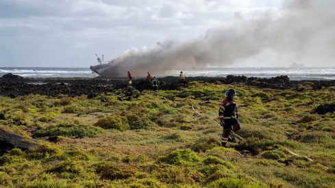 También el Cabildo de Lanzarote ha activado su plan insular de emergencias, tras comprobar que el pesquero encallado en la costa de Órzola ha comenzado a arder.