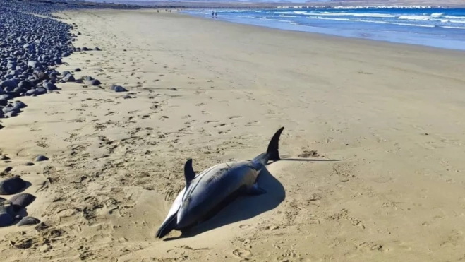 El cuerpo de un delfín listado (Stenella coeruleoalba) fue recuperado este viernes en la costa de Famara, en Lanzarote, después de que la Policía Local detectara su presencia durante un patrullaje y comunicara la situación a los organismos especializados en fauna marina.