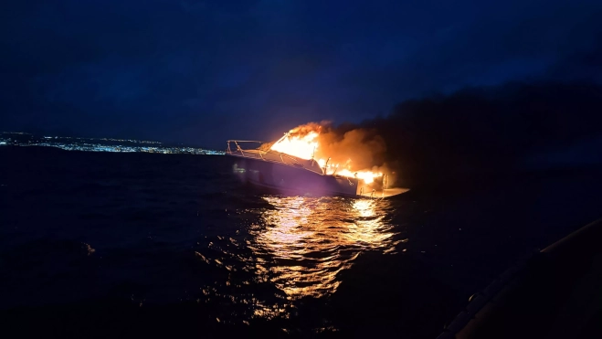Un barco de recreo ardía durante la noche del pasado jueves cerca de la costa de Yaiza, en la isla de Lanzarote. En él viajaban cuatro personas que presentaron hipotermia leve.