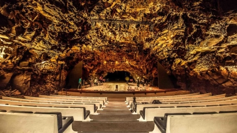 El Auditorio Jameos del Agua es único por su ubicación, —ideada por el propio César Manriqu— bajo tierra en el interior de un túnel volcánico producido por la erupción del Volván de la Corona y tiene capacidad para 500 espectadores. Fue el primer Centro de Arte, Cultura y Turismo del artista.