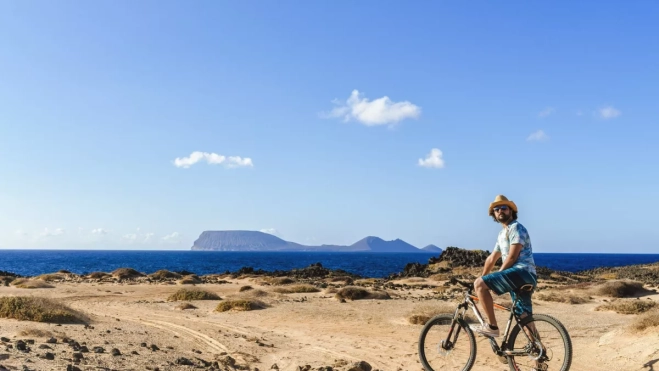 Por su tamaño y características, recorrer La Graciosa en bicicleta es casi una obligación para descubrirla al completo. Los caminos de tierra llevan a calas y playas solitarias donde apenas hay rastro humano —como quieren mantener para evitar la masificación que han sufrido las otras islas—. Otra opción para explorar su costa es apuntarse a alguna de las excursiones en barco que recorren los rincones más mágicos de esta isla protegida.