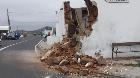 El Cabildo de Lanzarote ha cerrado de forma parcial la LZ-409, carretera que une los pueblos de Mozaga y El Peñón, después de que una guagua impactase en la mañana de este sábado contra una vivienda junto a la rotonda de Mozaga. Como consecuencia, se derrumbó parte del edificio.