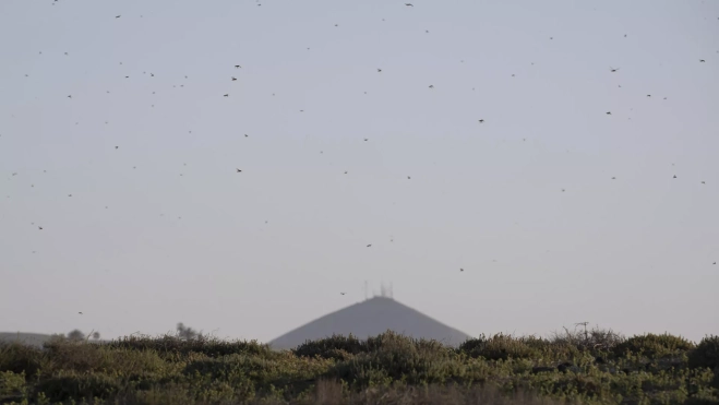 Lanzarote ha vivido este martes un episodio inusual: cientos de langostas africanas aparecieron en distintos puntos de la isla, coincidiendo con la calima procedente del Sáhara que estos días afecta al archipiélago. Los mayores avistamientos se registraron en la carretera que une La Caleta de Famara con la playa de San Juan, en el municipio de Teguise, donde se formó un gran enjambre, mientras que en Arrecife se observaron ejemplares aislados de gran tamaño.