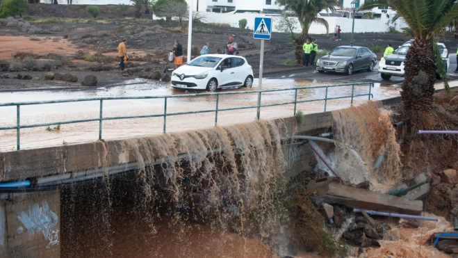 Las fuertes lluvias obligaron al corte de varias vías en la isla, como la subida de Tahíche, calles de Costa Teguise y el puente de la LZ-20 en dirección a San Bartolomé desde Arrecife.