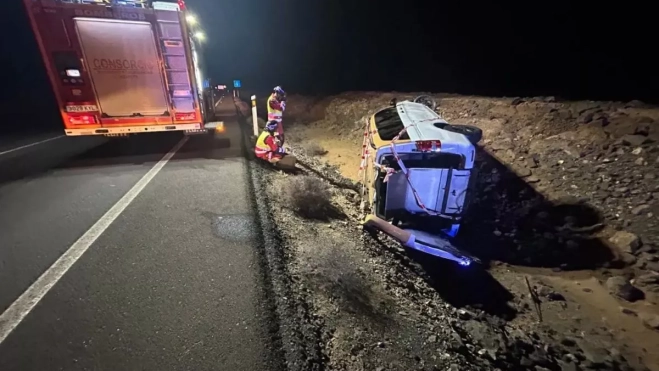 El suceso ocurrió sobre la 01:20 horas, cuando el Centro Coordinador de Emergencias y Seguridad (CECOES) 112 del Gobierno de Canarias recibió la alerta de la Policía Local de Yaiza, que informaba de la salida de un turismo en el que viajaban tres personas, una de ellas atrapada en el interior.