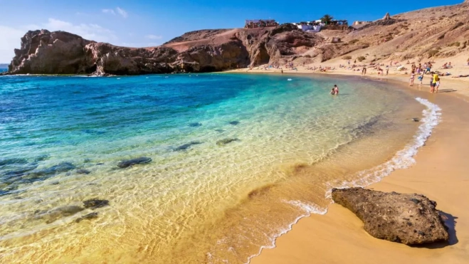 La playa de Papagayo, situada en el sur de Lanzarote, es uno de los mayores reclamos turísticos de la isla. Sus aguas turquesas y arena dorada crean un entorno paradisíaco perfecto para nadar, relajarse o practicar snorkel y descubrir la riqueza de su fondo marino.