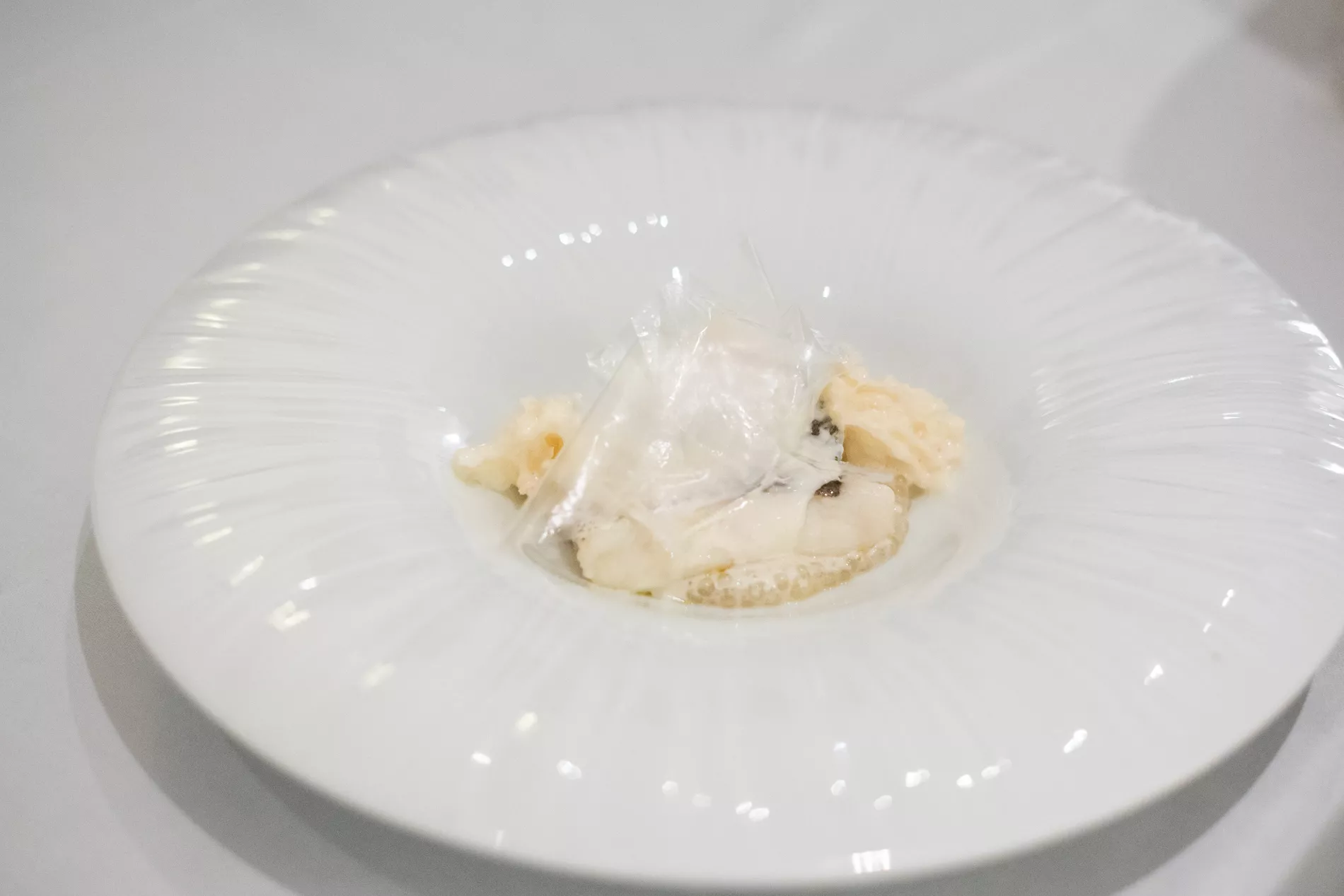 Vuelvo a afirmar que el plato, muy rico por cierto y que fue uno de los que sirvieron en la cena protagonizada por varios chefs con estrellas Michelín (Andoni Luis Aduriz, Albert Adriá, Nacho Manzano, Erlantz Gorostiza y el propio Dacosta), logra lo que pretende su creador, que no es más que reforzar una idea incuestionable y que no pretende ser apocalíptica pero sí incisiva: como sigamos nuestra carrera hacia el fin, lo que hoy son tapioca y féculas pueden ser verdadero plástico en un futuro venidero.
