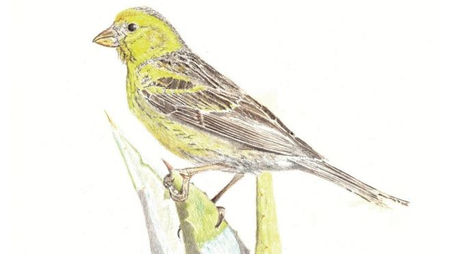 El canario silvestre o Serinus Canaria está considerado junto con la Palmera Canaria el símbolo natural del archipiélago, aunque no solo es un ave presente en Canarias, también es común verlo en Azores y Madeira pero en menor medida. Su procedencia genética viene derivada de especies que habitan en Africa del Sur y que fueron extendiéndose hacia el norte. De colores parduzcos en la parte superior y amarillo verdoso en la cara y partes inferiores, es más grande y tiene menos contraste que otros pájaros de la misma familia como el verdecillo y su plumaje es más gris y marrón. Las diferencias entre machos y hembras son prácticamente inapreciables, llegan hasta los 13 cm de longitud y su esperanza de vida en estado salvaje suele ser de entre cinco y diez años. Es frecuente observarlo volar en bandadas en una amplia variedad de ecosistemas, desde bosques de pino y laurel hasta en dunas de arena. Más común en áreas semiabiertas con árboles pequeños, tales como huertos y bosquecillos y en hábitats creados por el hombre, como parques y jardines, en ocasiones su presencia llega por encima de los 1500 metros sobre el nivel del mar. Se alimenta de semillas, algunos frutos y rara vez de pequeños insectos. Es un ave muy frecuente de ver en Tenerife, La Gomera, La Palma y el Hierro, más localizado en Gran Canaria y raro en Lanzarote y Fuerteventura. Anida en grupos, en los que cada pareja defiende su pequeño espacio pues son territoriales y usan el canto para marcarlo. Construyen un nido en forma de cuenco, compuesto de fibras vegetales, musgo, hierbas o restos de plantas, posteriormente forrados en su interior con plumas o pelos. Goza de una buena salud poblacional, pues aunque ha de ser protegido y conservado, se estima que en nuestras islas viven entre 150.000 y 200.000 ejemplares Aunque los canarios silvestres son de tonos apagados, desde el siglo XVII se han cruzado selectivamente en cautividad, dando origen a los colores vivos conocidos hoy en día, presentes en los canarios domésticos amén de haber sido introducido en lugares como las islas al oeste de Hawai, Bermudas o Puerto Rico, aunque por diversos motivos ha ido desapareciendo hasta extinguirse.