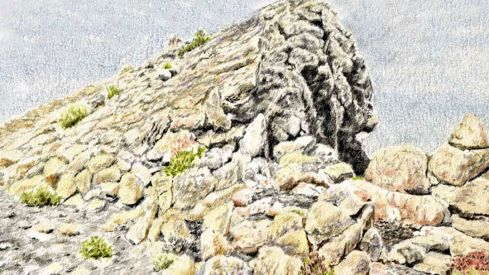 Lámina 45, lápiz sobre papel | El Roque Teneguía junto con los roques Niquiomo y Jedey es uno de los edificios volcánicos más singulares de Dorsal de Cumbre Vieja.