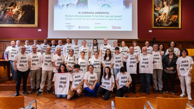 Es así que en el photocall muchos invitados-as querían fotografiarse con Don Miguel Agustín Torres que, después de exponer sus inquebrantables convicciones, mostraba con satisfacción una fotografía con un grupo que lucía camisetas (con el motivo “Just Stop Oil”) en una reciente jornada dedicada al medio ambiente en la Universidad Autónoma de Barcelona.