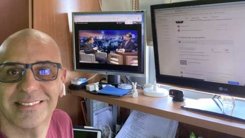 -"Mi apuesta, como ya he adelantado antes, es por la videoconferencia. Me pareció la mejor opción. Mantengo todas mis horas de clase por este sistema. He de confesar que pareció muy fácil al principio, pero hay momentos que ha resultado muy complicado. Especialmente los días en los que tengo cinco clases directas y tengo que estar sentado las cinco horas ante la cámara. Pero me parece que hay que estar. No porque sea una orden de la Consejería, sino porque a los muchachos y las muchachas les viene bien escuchar tu voz, hablar contigo, preguntarte las dudas. No es igual enviar una hoja de ejercicios que ir haciéndolas juntos, con sus compañeros y, cómo no, reírnos un rato, prohibiéndoles ir al baño o mandándolos al director.