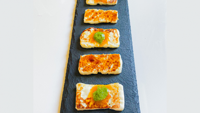 - Cortamos el queso del tamaño deseado y lo hacemos vuelta y vuelta a la plancha.