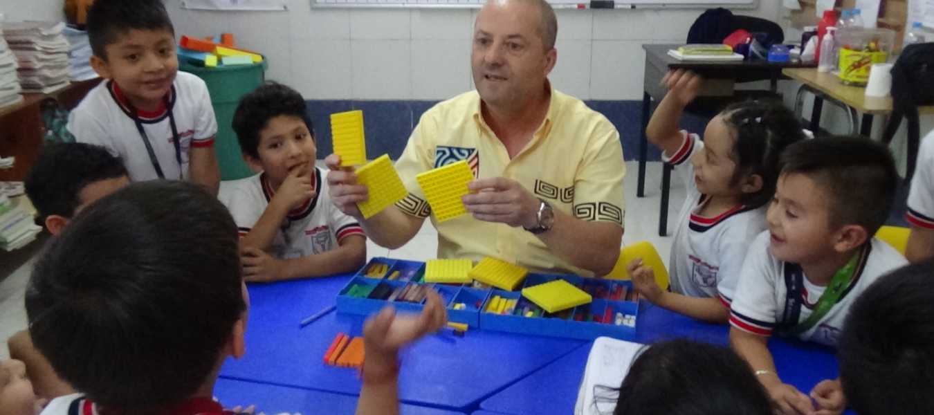 Durante una experiencia de aula, Tony Martín manipula las regletas con los alumnos. | OAOA