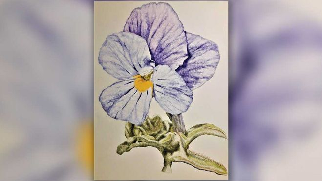 Su flor es muy parecida a la del pensamiento, aunque se diferencia de este entre otras cosas porque sus hojas están cubiertas de un pelo muy fino y suave. Los colores que presenta en sus cinco pétalos pueden variar desde el malva pálido al violeta intenso, con manchas que blancas o amarillas y su época de floración es a mediados o finales de la primavera.