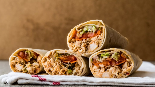El durum kebab es la carne enrollada o envuelta en el pan con vegetales u otra guarnición. Se dice que el origen se remonta al momento en que los militares turcos invadieron Anatolia y pinchaban la carne en sus espadas para cocinarla al fuego, aunque lo hacían en horizontal, una técnica que ya no se usa para evitar que la grasa caiga encima del fuego.