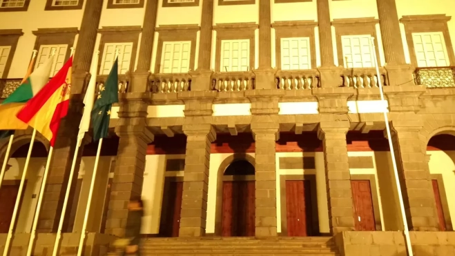 El Ayuntamiento de Las Palmas de Gran Canaria iluminó anoche las Casas Consistoriales de dorado para conmemorar el Día Internacional del Cáncer Infantil, que se celebra cada 15 de febrero.