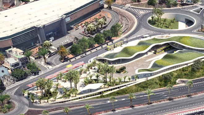 Las cocheras, talleres y aparcamientos de guaguas se ubicarán bajo tierra, con rampas dotadas de ventilación e iluminación natural.