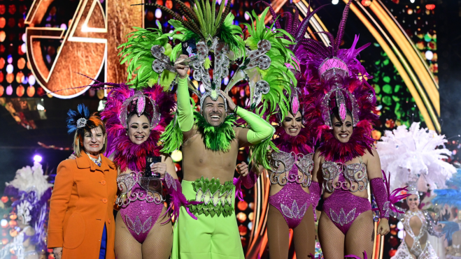 La noche de las comparsas fue una noche de Carnaval en estado puro. Una Noche de fiesta, de Color esperanza, de Siempre con el corazón lila, de Vamos a celebrar y de Amanecer dorado. Todas estas manifestaciones fueron las alegorías de los grupos que iluminaron, aún más, el escenario más tecnológico diseñado por el interiorista Sergio Macías.