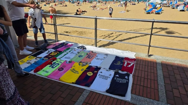 La consolidación de este mercado paralelo supone un golpe directo para el tejido empresarial local. A escasos metros de los negocios formales, el producto estrella sobre las mantas son las camisetas de fútbol falsificadas. La equipación de la UD Las Palmas lidera la demanda, generando una competencia desleal evidente frente a los establecimientos que sí asumen los costes tributarios y legales de su actividad comercial.