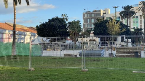 La previsión del consistorio era comenzar a preparar el escenario del Carnaval y las gradas a partir del 7 de enero –el pasado sábado–. Los primeros movimientos, sin embargo, comenzaron este lunes con el vallado perimetral del parque y la llegada de material.