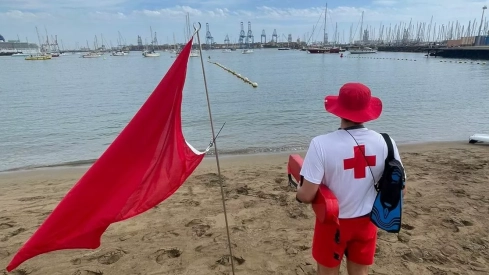 Cruz Roja ha izado bandera roja en la zona afectada, la más cercana al muelle deportivo, y amarilla en el resto de la playa, mientras operarios de limpieza de Ciudad de Mar han procedido a colocar lonas informativas alertando de la situación en los accesos.