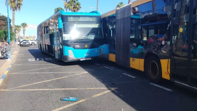 La mañana de este viernes comenzó con importantes problemas de tráfico en Juan XXIII, en Las Palmas de Gran Canaria, después de que dos guaguas —una municipal y otra de Global— se vieran implicadas en un choque que bloqueó buena parte de la avenida. La colisión se produjo en una maniobra de cambio de carril que terminó con ambos vehículos impactando.