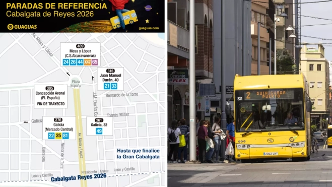 Las restricciones de tráfico con motivo de la Gran Cabalgata de los Reyes Magos comenzarán aproximadamente a partir de las 14.00 horas. Desde ese momento, Guaguas Municipales activará un plan especial de desvíos y centralización de paradas, en coordinación con Movilidad y la Policía Local.