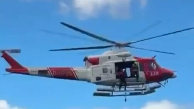 Un helicóptero ha acudido al rescate de las dos personas que habían quedado atrapadas en el barranco de Guiniguada, en Las Palmas de Gran Canaria, tras la crecida del cauce provocada por la borrasca Therese, según se aprecia en un vídeo que ha recibido Atlántico Hoy.