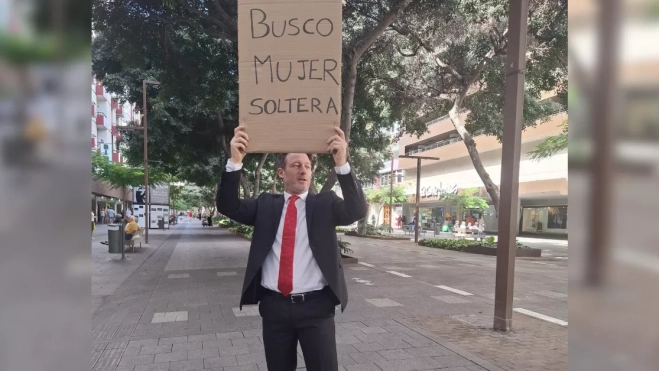En Las Palmas de Gran Canaria, un agente inmobiliario ha captado la atención de los transeúntes en Mesa y López con una estrategia inusual. Sosteniendo un cartel que dice "busco mujer soltera", rápidamente intriga a todos los que pasan.